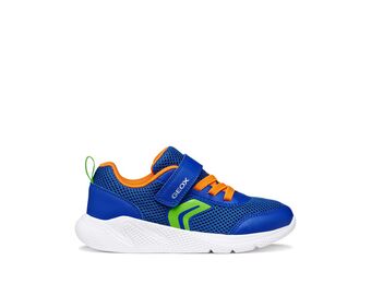 Hop, skip and jump in these ultra lightweight trainers. Royal Blue and orange colour combination is sure to be a favourite. Single velcro fastening with stretch laces and fully breathable upper and sole unit.