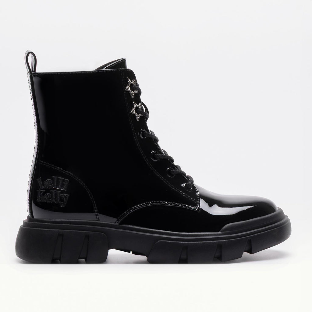 Lelli Kelly Malika Girls Black Patent Side Zip Lace Fastening Boots LK5300